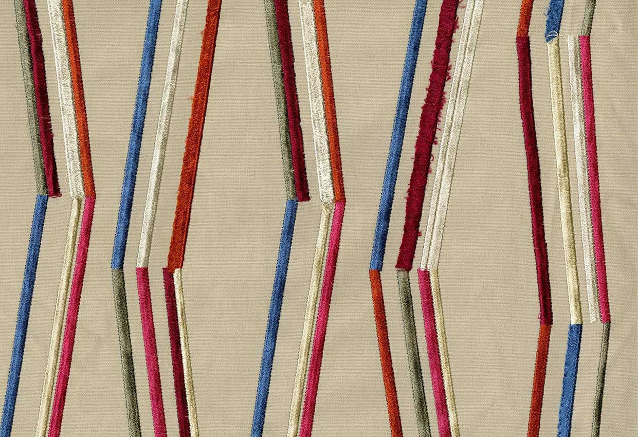 FRAYED RED STICKS EMBROIDERED FABRIC