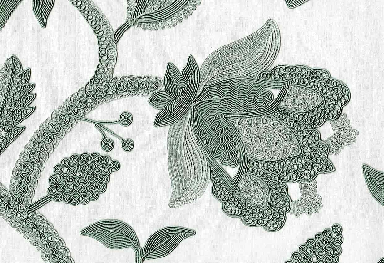 STUNNING HAND-CORDED FLORAL EMROIDERY ON LINEN